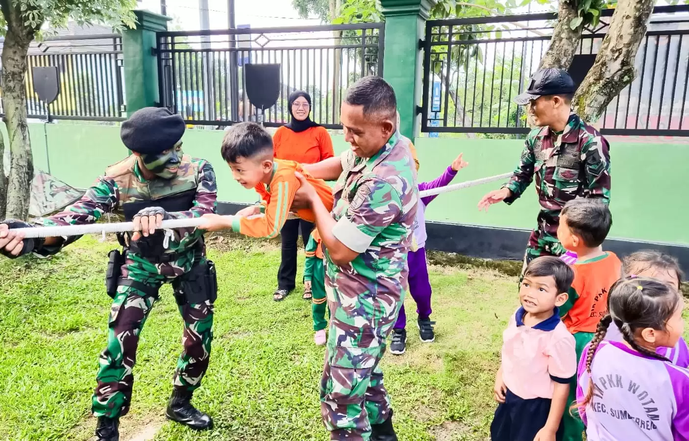 "Selain untuk menambah pengetahuan anak-anak tentang TNI, kegiatan ini juga untuk memberikan pendidikan karakter sejak dini, membentuk keberanian, kemandirian, serta semangat kebersamaan dalam diri mereka,” kata Peltu Agus Suyanto.