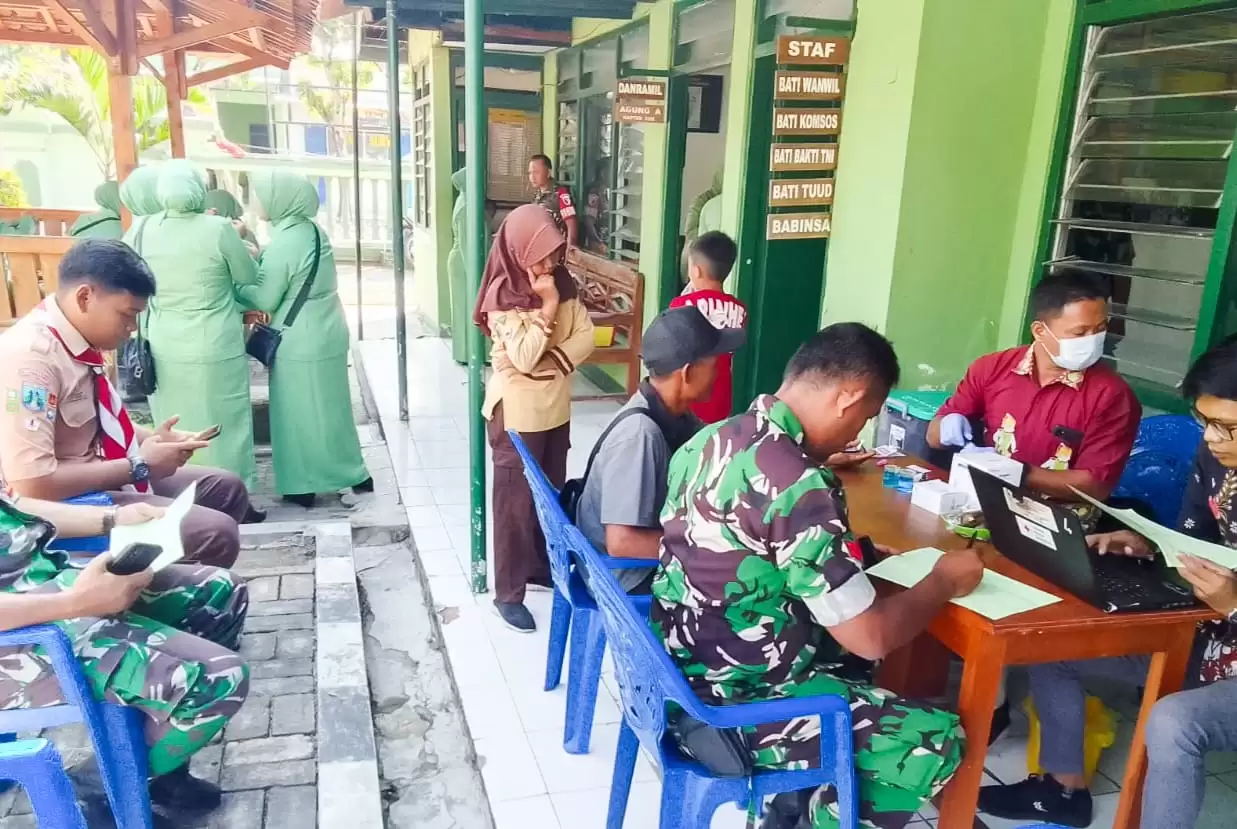 BOJONEGORO JATIM || Penarealita.com - Bekerja sama dengan Palang Merah Indonesia (PMI) Kabupaten Bojonegoro, Komando Rayon Militer (Koramil) 12/Kasiman Kodim 0813 Bojonegoro, pagi ini Jum'at (21/6/2024), menyelenggarakan kegiatan bakti sosial donor darah di Markas Koramil setempat.