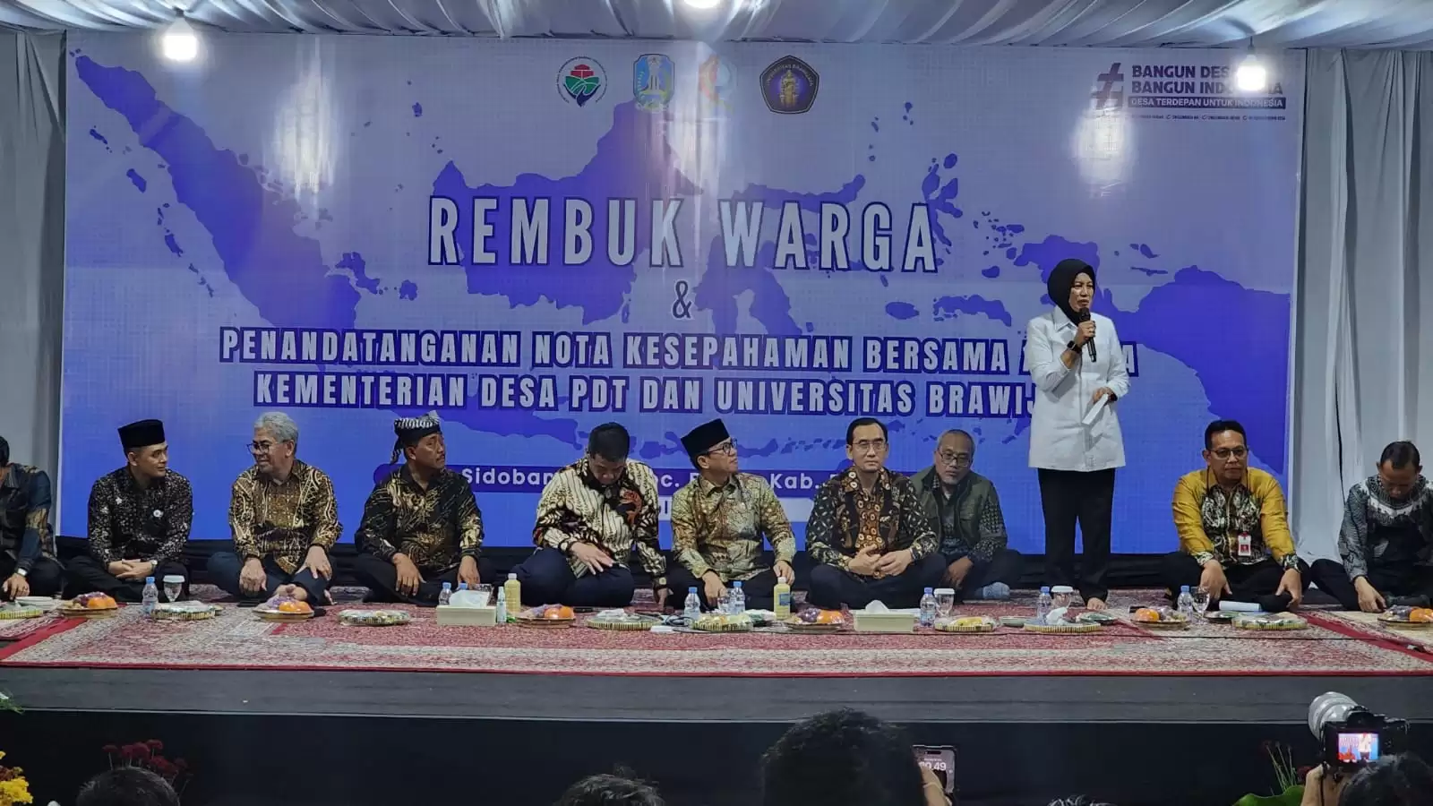 BOJONEGORO || Penarealita.com - Menteri Desa, Pembangunan Daerah Tertinggal dan Transmigrasi (PDTT) RI, H. Yandri Susanto dan Wakil Menteri H. Ahmad Riza Patria hadir dalam acara rembug warga sekaligus penandatanganan Nota Kesepahaman (MoU) antara Kemendes PDTT dan Universitas Brawijaya (UB). Kegiatan ini digelar di Wisata BABO, Desa Sidobandung, Kecamatan Balen, Kamis (24/07/2025) malam.