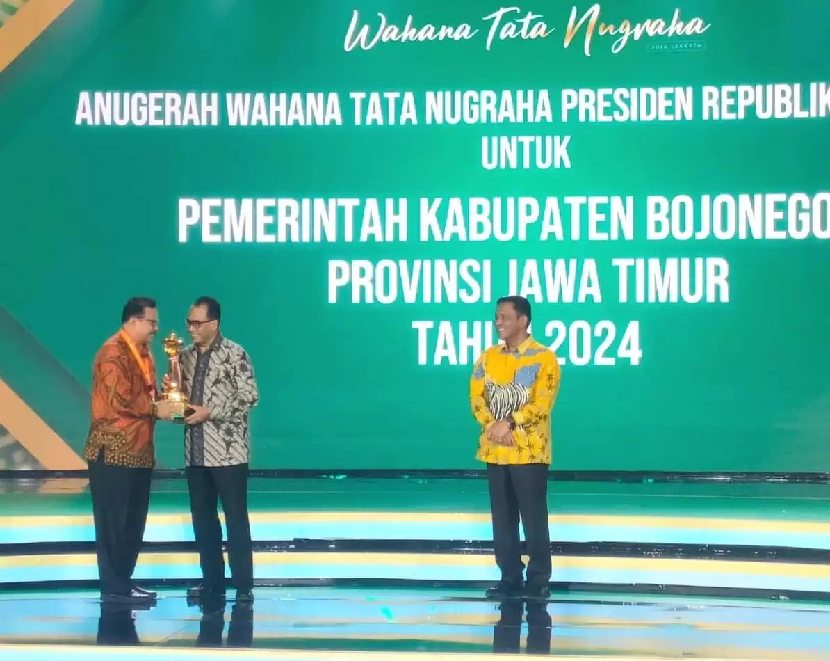 "Alhamdulillah, tahun ini Kabupaten Bojonegoro mendapatkan penghargaan Wahana Tata Nugraha kategori kota kecil. Penghargaan tersebut diterima oleh Pj Bupati Bojonegoro Adriyanto yang diwakili Asisten Perekonomian dan Pembangunan Setda Kabupaten Bojonegoro Kusnandaka Tjatur P.," ucapnya.