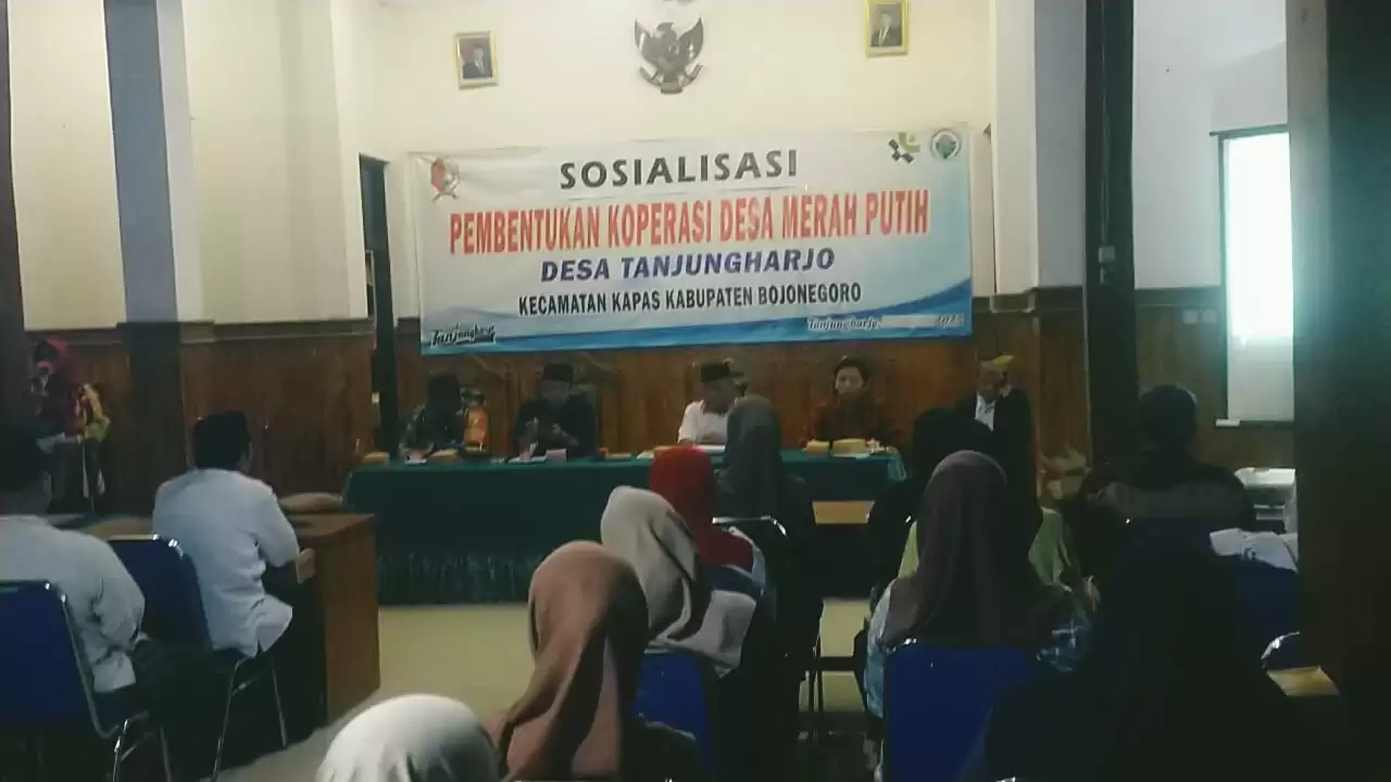 BOJONEGORO || Penarealita.com - Desa Tanjungharjo, Kecamatan Kapas, Kabupaten Bojonegoro, Jawa Timur, menggelar sosialisasi pembentukan Koperasi Desa Merah Putih pada Jum'at 23 Mei 2025.