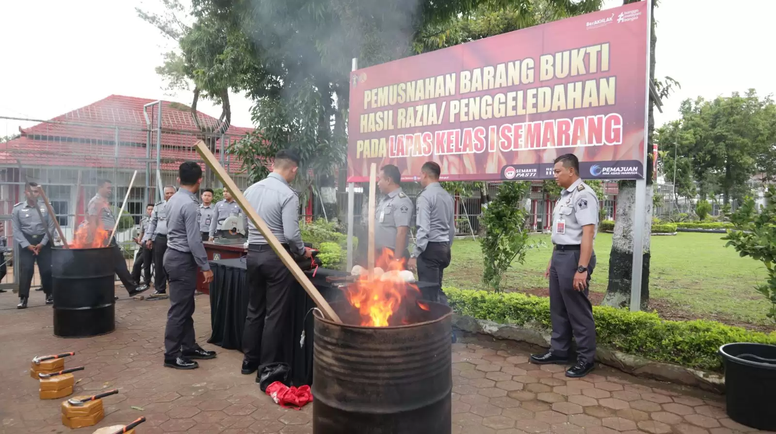 “Kami berkomitmen selalu, disamping itu menjadi semangat menunjukkan amanat Direktur Jenderal Pemasyarakatan 3 kunci pemasyarakatan plus back to basic.” ucap Kalapas usai memimpin pemusnahan barang larangan yang berlangsung di Loji Gayeng Lapas Semarang. Selasa, 06 Februari 2024.