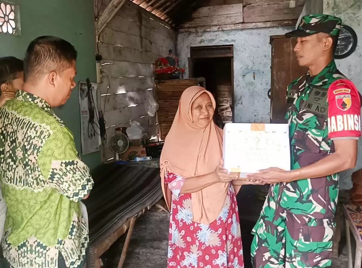 BOJONEGORO | Penarealita.com - Jelang Hari Raya Idul Fitri 1445 Hijriah, Babinsa Koramil 09/Sumberrejo Kodim 0813 Bojonegoro, melaksanakan bakti sosial dengan membagikan bingkisan kepada warga kurang mampu diwilayah binaan, Minggu (7/4/2024). Bingkisan ini dibagikan kepada ibu Kaspiyah warga Dusun Prembugan RT.001/RW.003 Desa Pekuwon Kecamatan Sumberrejo Kabupaten Bojonegoro.