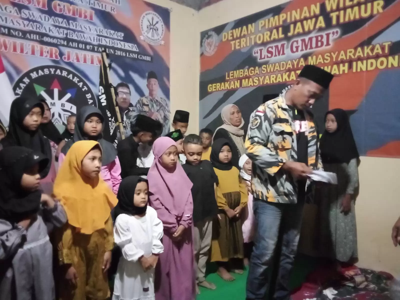 "Alhamdulillah kami masih diberikan kesempatan untuk berbagi dengan sesama, khususnya beberapa anak yatim.dan dhuafa," ucap Sugeng SP, Ketua Wilter Jatim LSM GMBI.