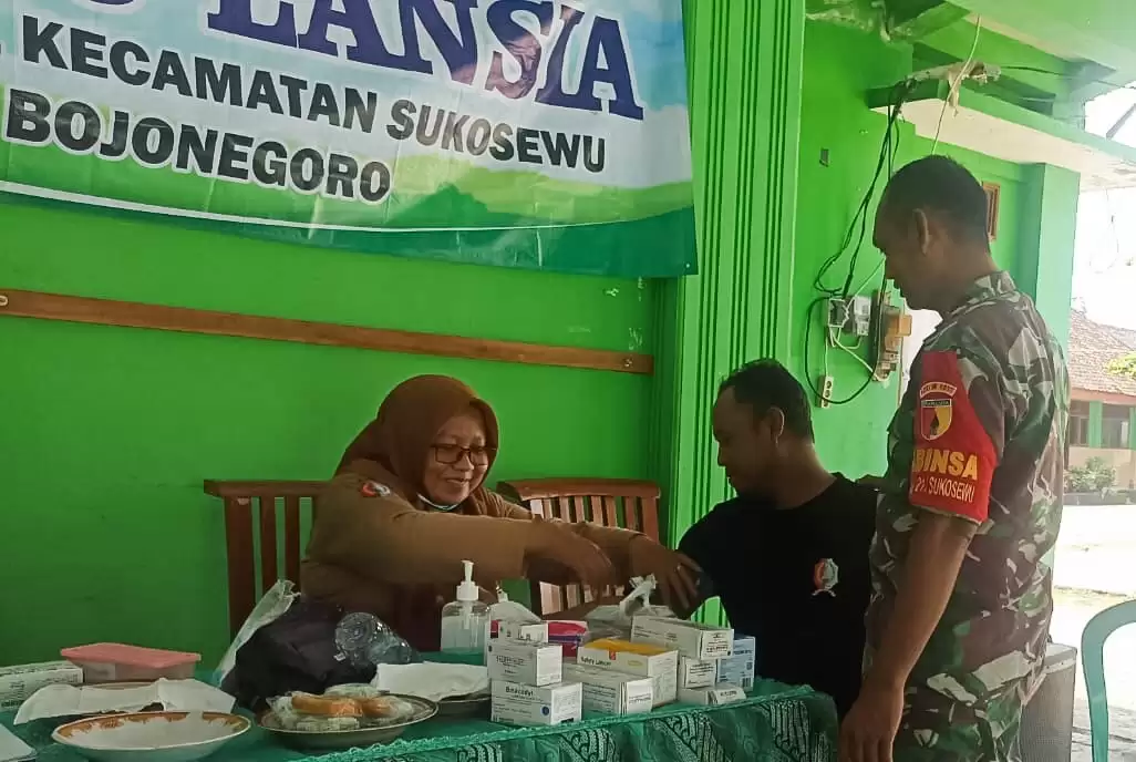 BOJONEGORO || Penarealita.com - Sebagai wujud kepedulian terhadap kesehatan masyarakat khususnya bagi warga lanjut usia, Bintara Pembina Desa (Babinsa) Koramil 21/Sukosewu Kodim 0813 Bojonegoro, Sertu Yatin, bersama Petugas Kesehatan Puskesmas Sukosewu mendampingi Bidan Desa dalam kegiatan Posyandu Lansia di Balai Desa Sumberjokidul, Kecamatan Sukosewu Kabupaten Bojonegoro, Senin (22/4/2024).