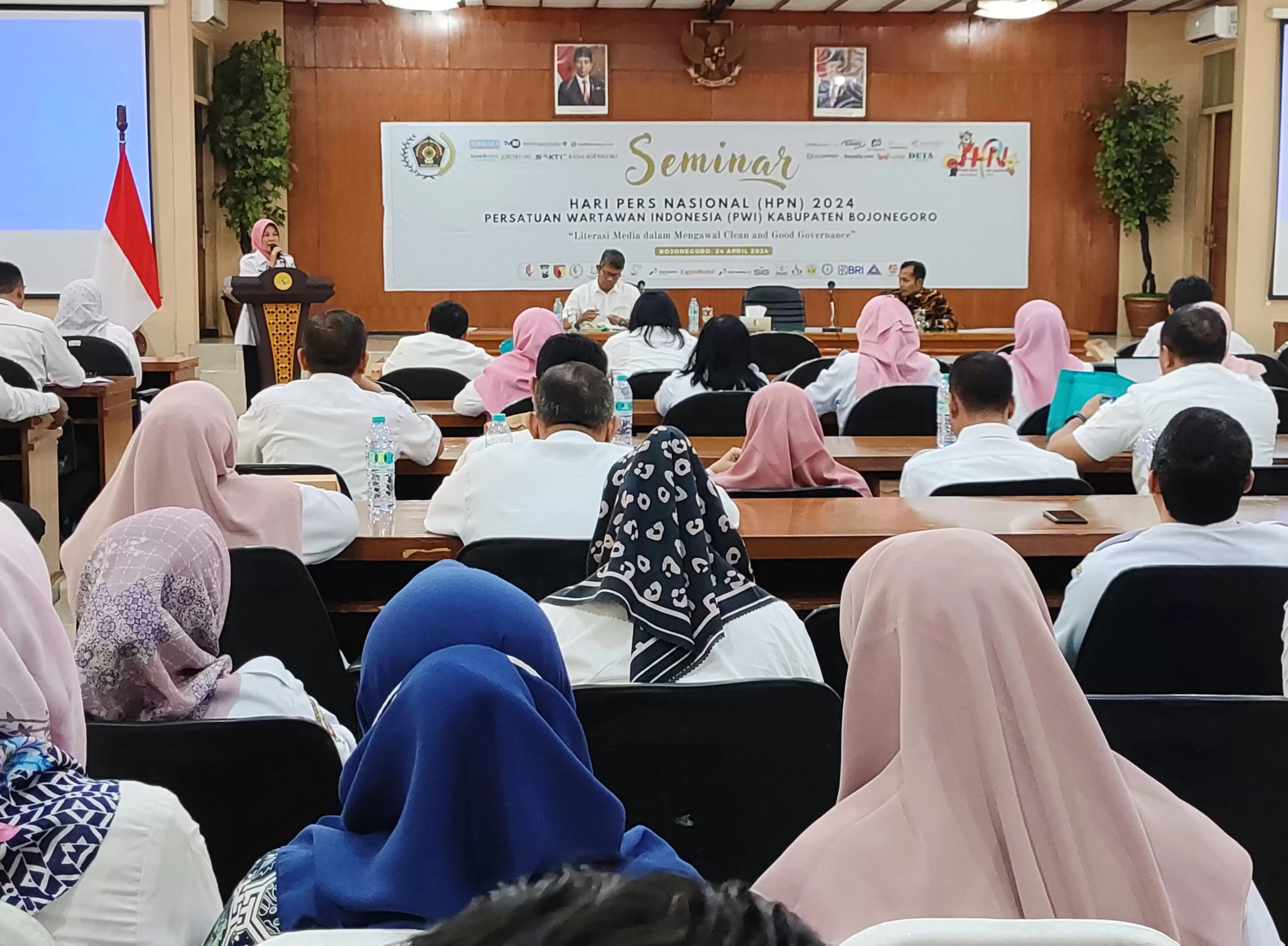 BOJONEGORO | Penarealita.com - Dalam rangka memperingati Hari Pers Nasional (HPN) tahun 2024, Pemkab Bojonegoro bersama media bersinergi mengawal dan membangun pemerintahan yang clean and good governance. Hal ini menjadi poin penting yang disampaikan dalam seminar Literasi Media yang diselenggarakan di ruang Angling Dharma lt. 2, Gedung Pemkab Bojonegoro, Rabu (24/04/2024).