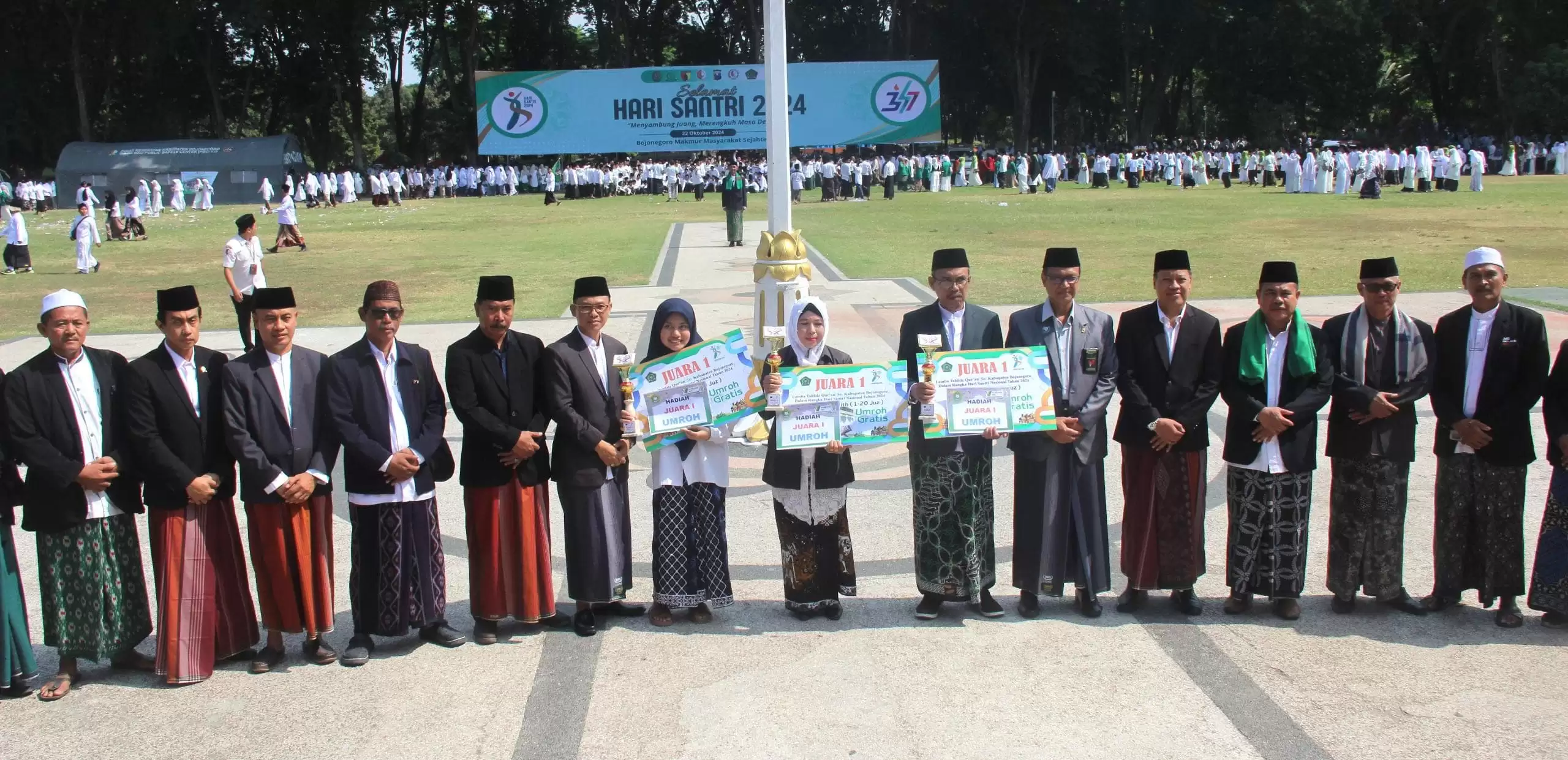 BOJONEGORO || Penarealita.com - Dalam rangka menyemarakkan Hari Santri Nasional (HSN), Pemkab Bojonegoro bersama ribuan santri menggelar apel di alun-alun Bojonegoro, Selasa (22/10/2024). Peringatan HSN ini diharapkan menjadi momentum untuk memperkuat komitmen dalam meraih masa depan gemilang dan mewujudkan cita-cita bangsa.