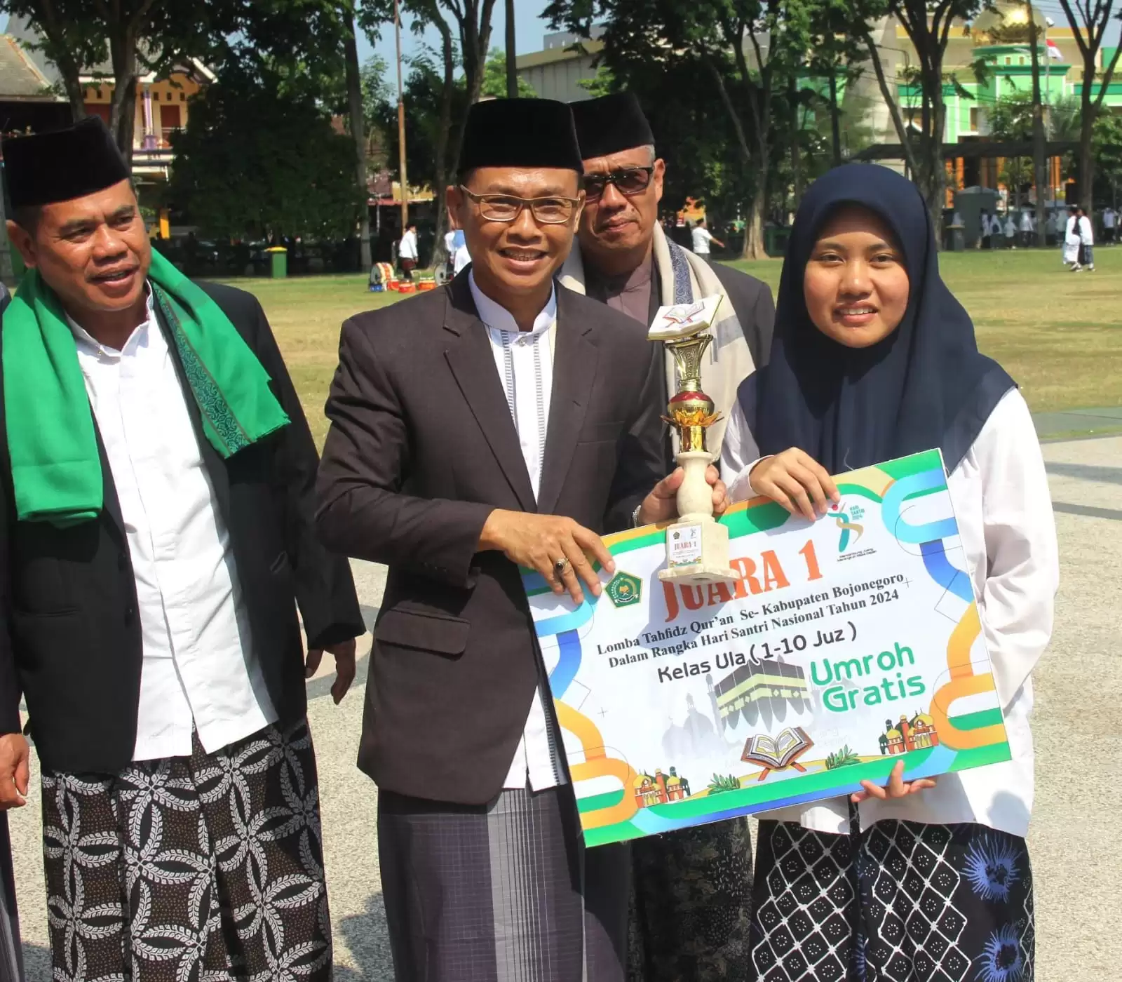 Pj Sekretaris Daerah Bojonegoro Djoko Lukito membacakan amanat dari Menteri Agama bahwa Hari Santri yang diperingati setiap tanggal 22 Oktober adalah momentum bagi semua untuk mengenang dan meneladani para santri yang telah memperjuangkan dan mempertahankan kemerdekaan Indonesia. Salah satu bukti perlawanan santri terhadap para penjajah adalah peristiwa “Resolusi Jihad” pada tanggal 22 Oktober tahun 1945 yang dimaklumatkan oleh Hadratus Syekh Kiai Haji Hasyim Asyari. Di mana puncak perlawanan masyarakat Indonesia terjadi pada tanggal 10 November 1945 yang diperingati sebagai Hari Pahlawan.