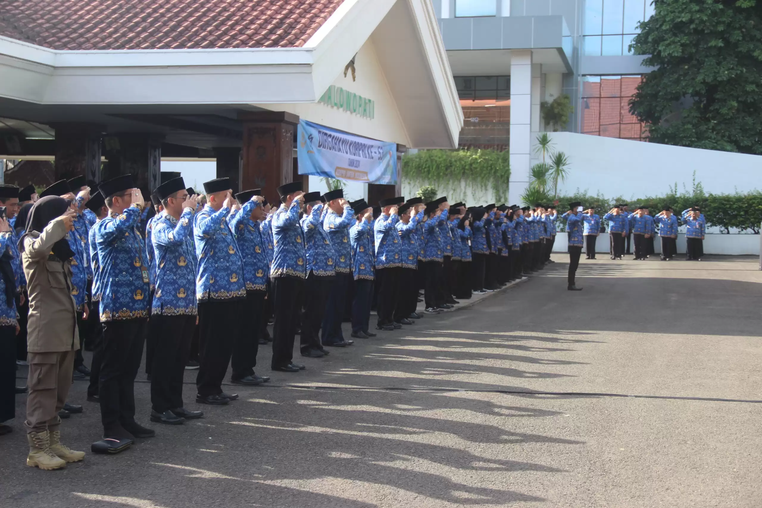 BOJONEGORO || Penarealita.com – Para pejabat dan ASN di lingkup Pemerintah Kabupaten Bojonegoro mengikuti Upacara Peringatan HUT ke-53 KORPRI, Jumat (29/11/2024) di halaman Pendopo Malowopati. Guna menambah kemeriahan, seusai upacara, seluruh peserta upacara melakukan pemotongan tumpeng dan pembagian doorprize.