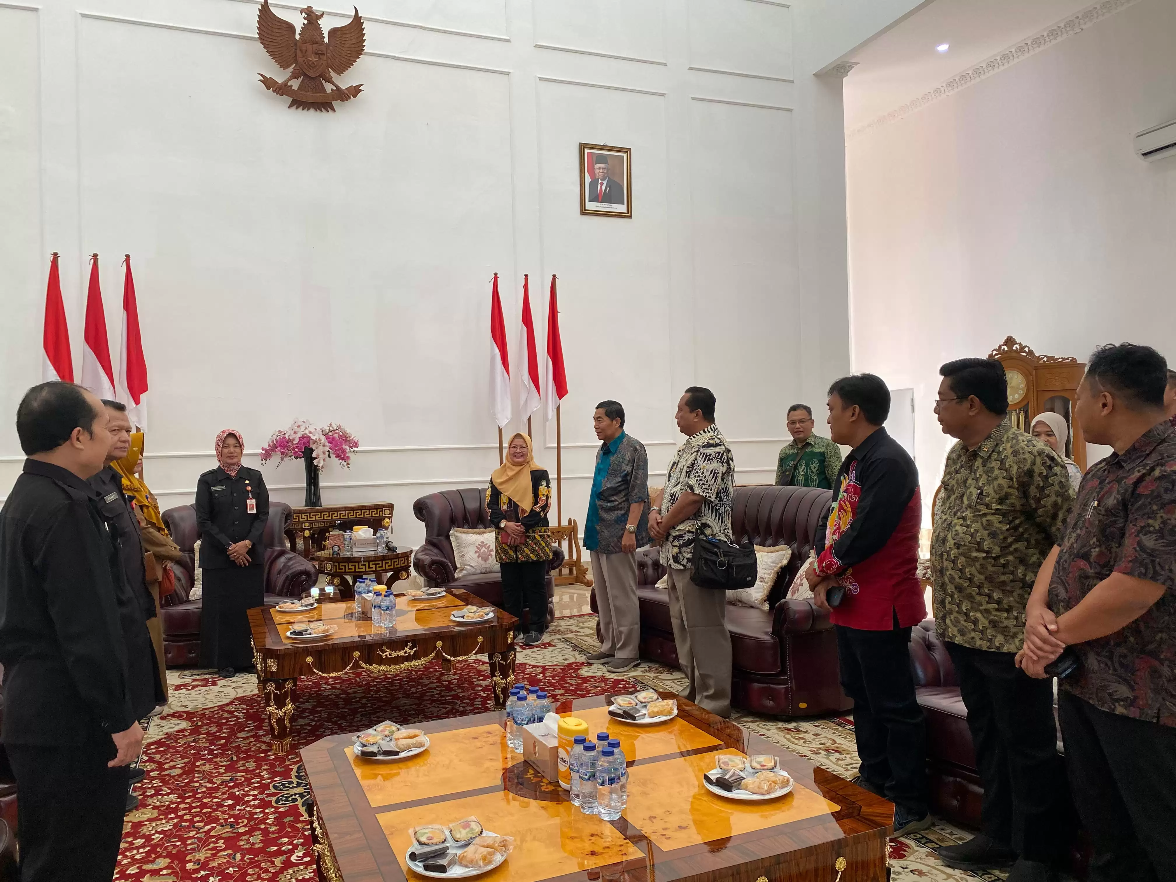 BOJONEGORO JATIM || Penarealita.com - Sekretaris Daerah Kabupaten Bojonegoro Nurul Azizah dan sejumlah pejabat Pemkab menyambut Tim Penilai Lapang Lomba BUM Desa Provinsi Jatim Tahun 2024 di Gedung Putih Pemkab Bojonegoro, Selasa (25/6/2024). Penyambutan tersebut juga diwarnai dengan penyerahan cinderamata kepada tim penilai.