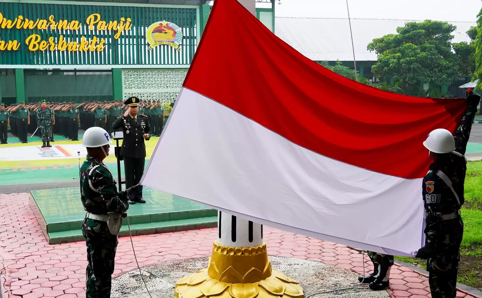 Selaku Inspektur Upacara (Irup), Dandim 0813 Bojonegoro Letkol Czi Arief Rochman Hakim, SE., MM., membacakan Amanat Kepala Badan Pembinaan Ideologi Pancasila (BPIP) Republik Indonesia, Yudian Wahyudi, yang intinya bahwa pada hari ini, tanggal 1 Juni 2025, kita kembali memperingati momentum yang sangat penting dalam sejarah bangsa lndonesia yakni Hari Lahir Pancasila.