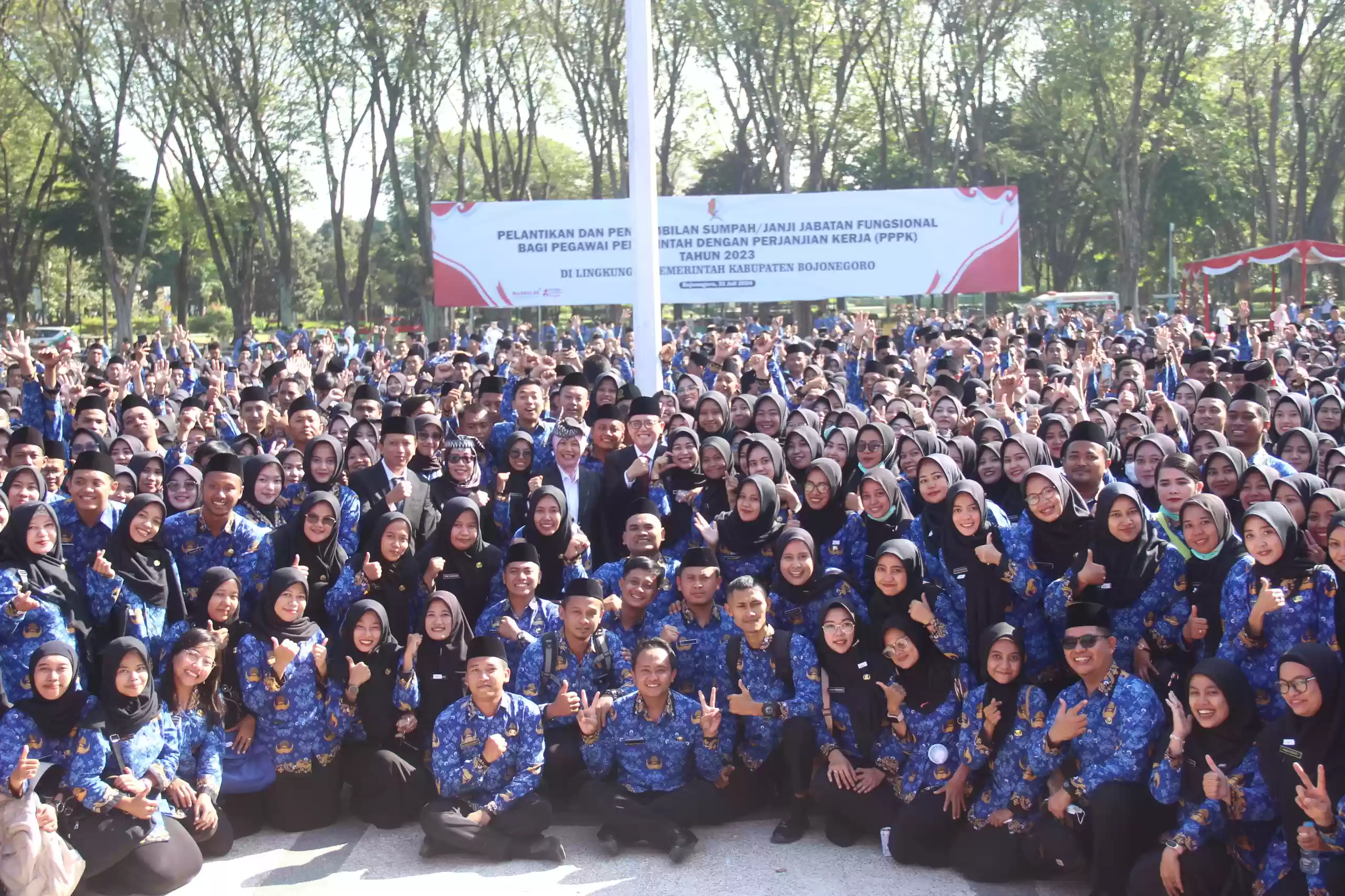 BOJONEGORO || Penarealita.com - Penjabat (Pj) Bupati Bojonegoro Adriyanto melantik dan mengambil sumpah janji jabatan fungsional sebanyak 1.935 PPPK tahun 2023 di alun-alun Kabupaten Bojonegoro, Rabu (31/7/2024). Pj Bupati berharap, dengan adanya para PPPK, pembangunan daerah semakin baik.