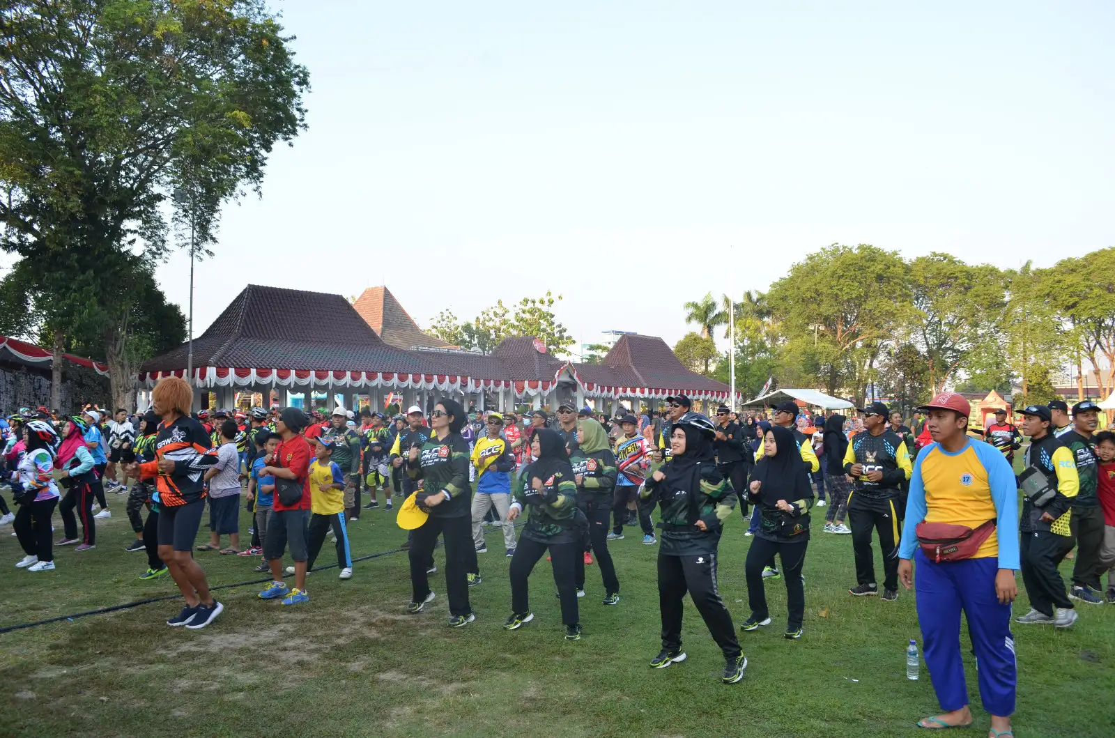 BOJONEGORO | Penarealita.com - Ribuan orang mengikuti Fun Bike dan Aerobik yang digelar Kodim 0813 Bojonegoro, Minggu (8/10/2023). Kegiatan ini dalam rangka memeriahkan Hari Ulang Tahun (HUT) ke- 78 TNI. Kegiatan bertema 'TNI Patriot NKRI, Pengawal Demokrasi Untuk Indonesia Maju' ini dipusatkan di alun-alun Kota Bojonegoro.
