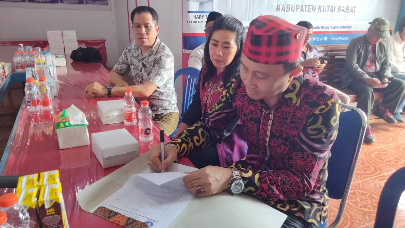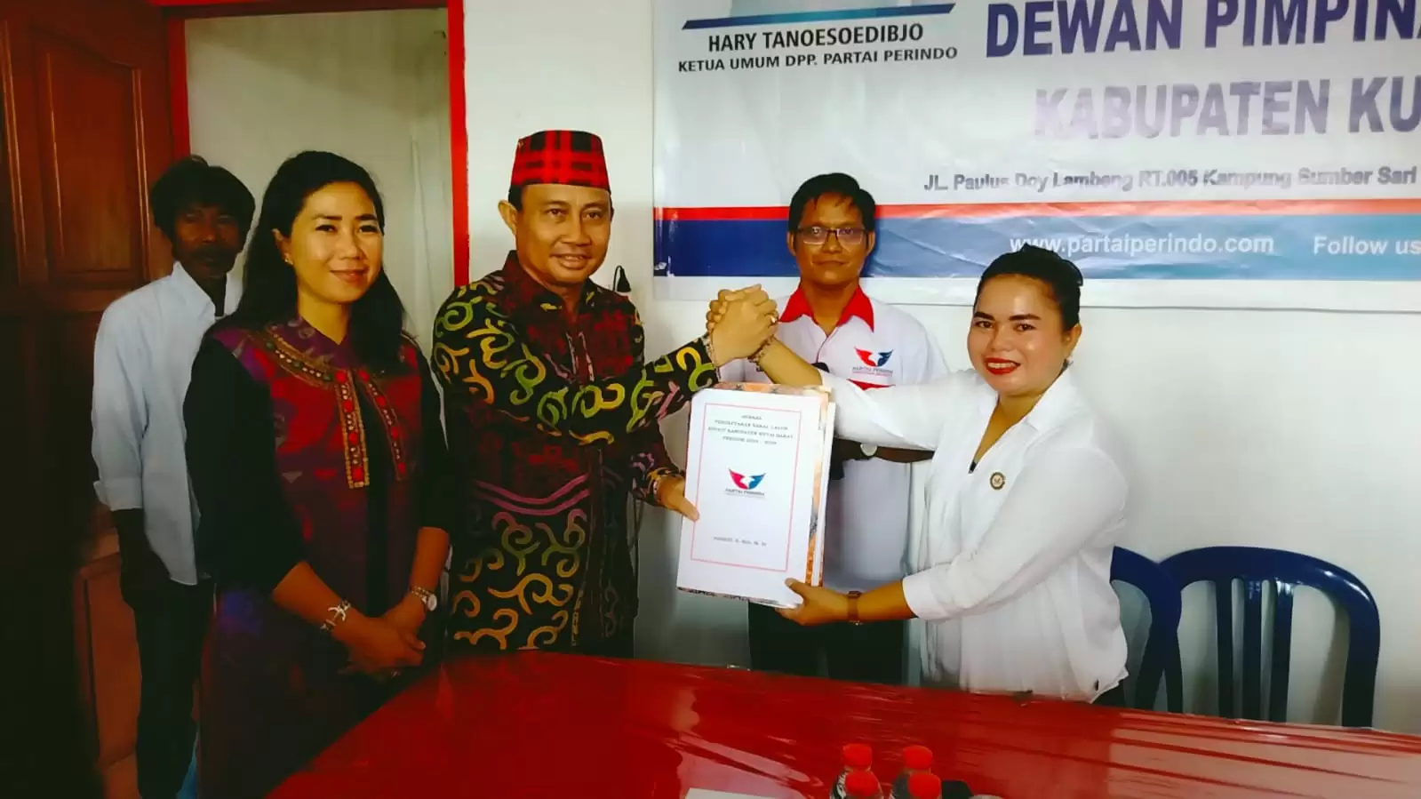 Kedatangannya di Perindo kali ini untuk pengembalian formulir pendaftaran bakal calon bupati Kutai Barat periode 2024 - 2029 berlangsung di Jl. Paulus Lembang RT 5 kampung Sumber Sari kecamatan Barong Tongkok.