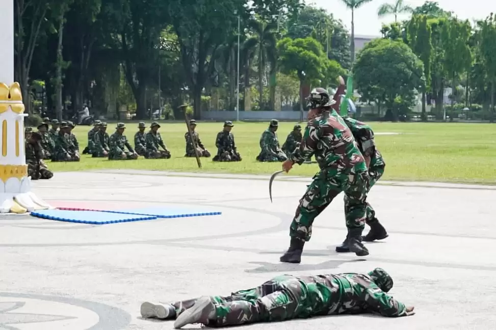 Ratusan Babinsa terlatih Kodim 0813 Bojonegoro ini melakukan serangkaian latihan beragam demontrasi ketangkasan mulai dari perkelahian sangkur, Pertempuran Jarak Dekat (PJD), pemecahan bata hebel, pemecahan gentong dengan mata tertutup, hingga demontrasi bela diri militer double stick.