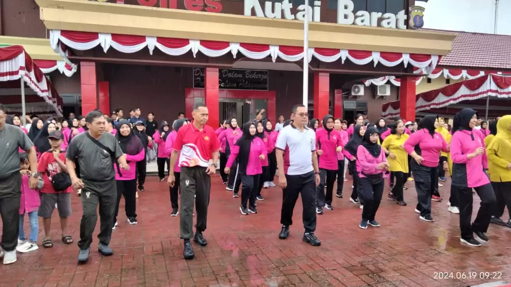 KUTAI BARAT || Penarealita.com - Dalam rangka sambut Hari Bhayangkara ke - 78, Kepolisian Resor (Polres) Kabupaten Kutai Barat (Kubar) provinsi Kalimantan Timur (Kaltim) menggelar jalan sehat dan senam bersama TNI dari Kodim 0912/Kbr dan Stakeholder.