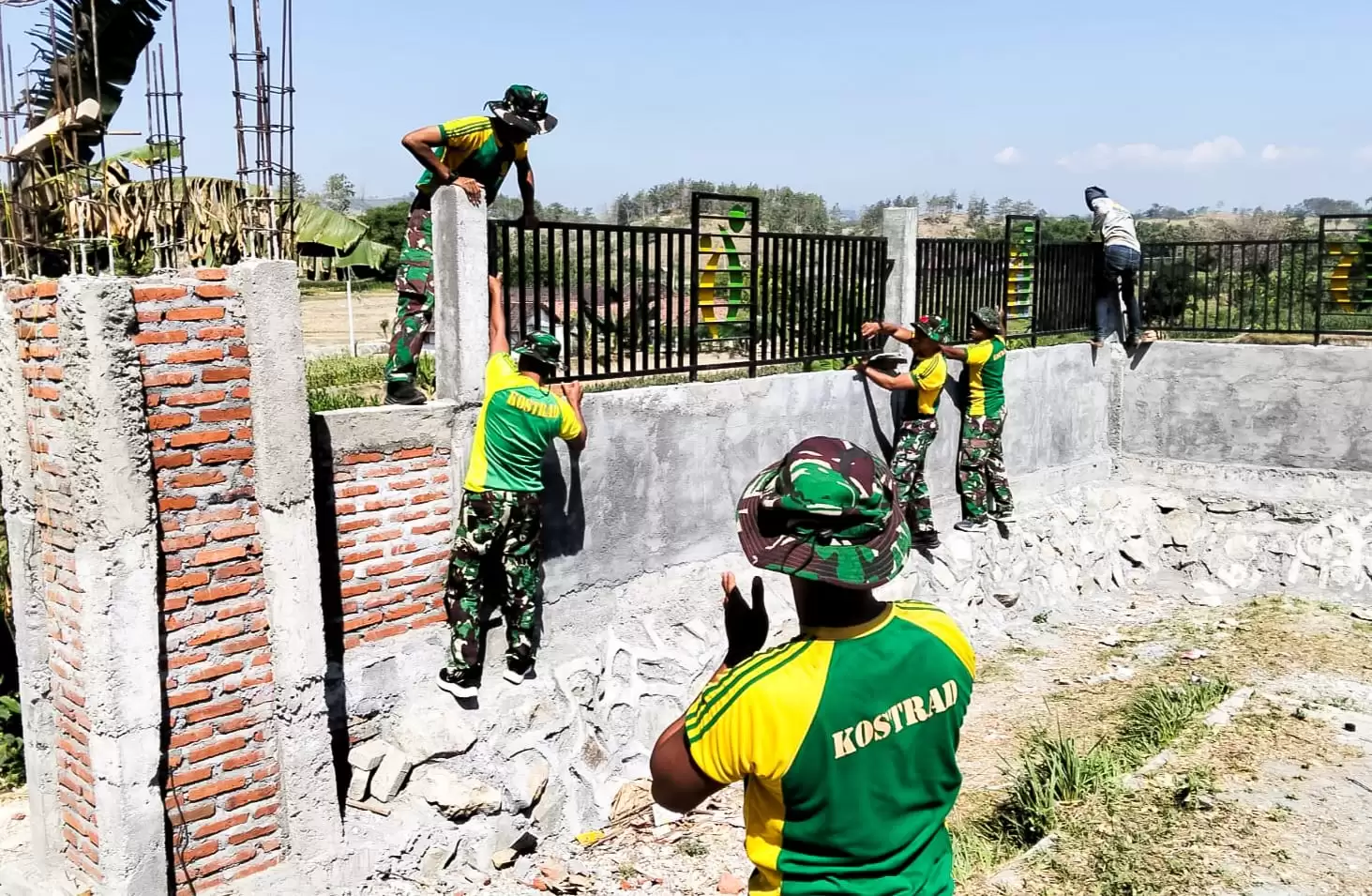 BOJONEGORO || Penarealita.com - Pembangunan infrastruktur dan fasilitas umum pada pelaksanaan kegiatan program TNI Manunggal Membangun Desa (TMMD) ke- 125 tahun 2025 di Desa Soko Kecamatan Temayang Kabupaten Bojonegoro terus berlanjut, termasuk pembangunan pagar Sekolah Dasar Negeri (SDN) Soko IV.