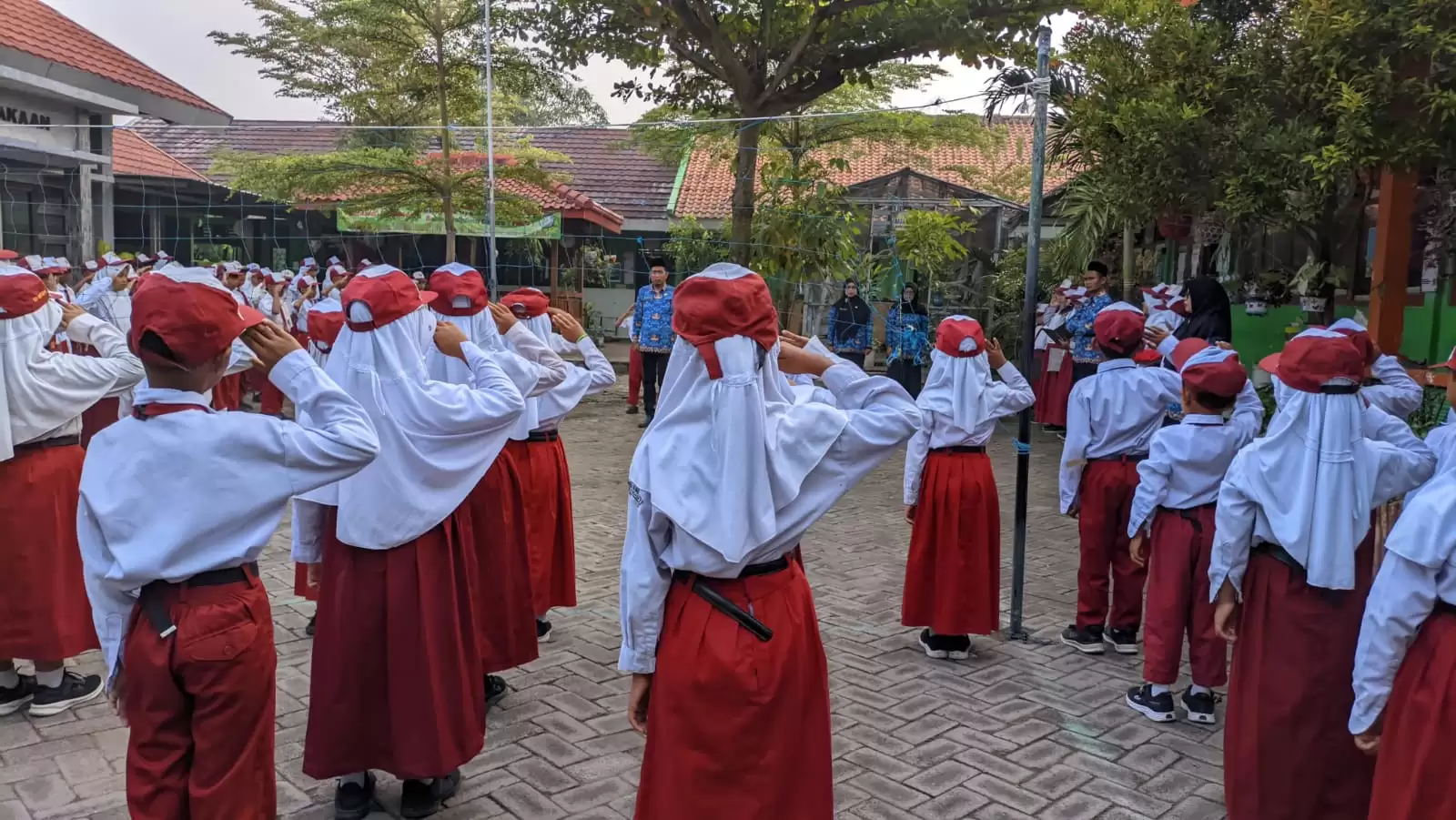 Upacara peringatan Hari Lahir Pancasila berlangsung dengan khidmat dan penuh semangat. Siswa-siswi SDN 1 Bandungrejo menunjukkan keseriusan dan antusiasme dalam mengikuti upacara tersebut.