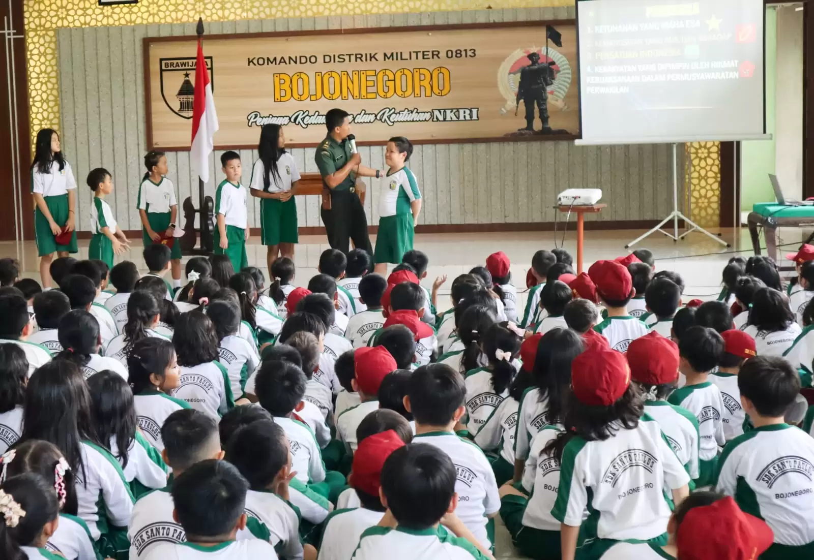 Dalam kunjungan itu, sebanyak 240 pelajar SD Katolik Santo Paulus Bojonegoro mulai dari kelas 1 sampai kelas 6 ini menerima pembekalan tentang wawasan kebangsaan, bela negara, anti kekerasan (bullying) dan pendidikan seksualitas dari para prajurit Kodim 0813 Bojonegoro.