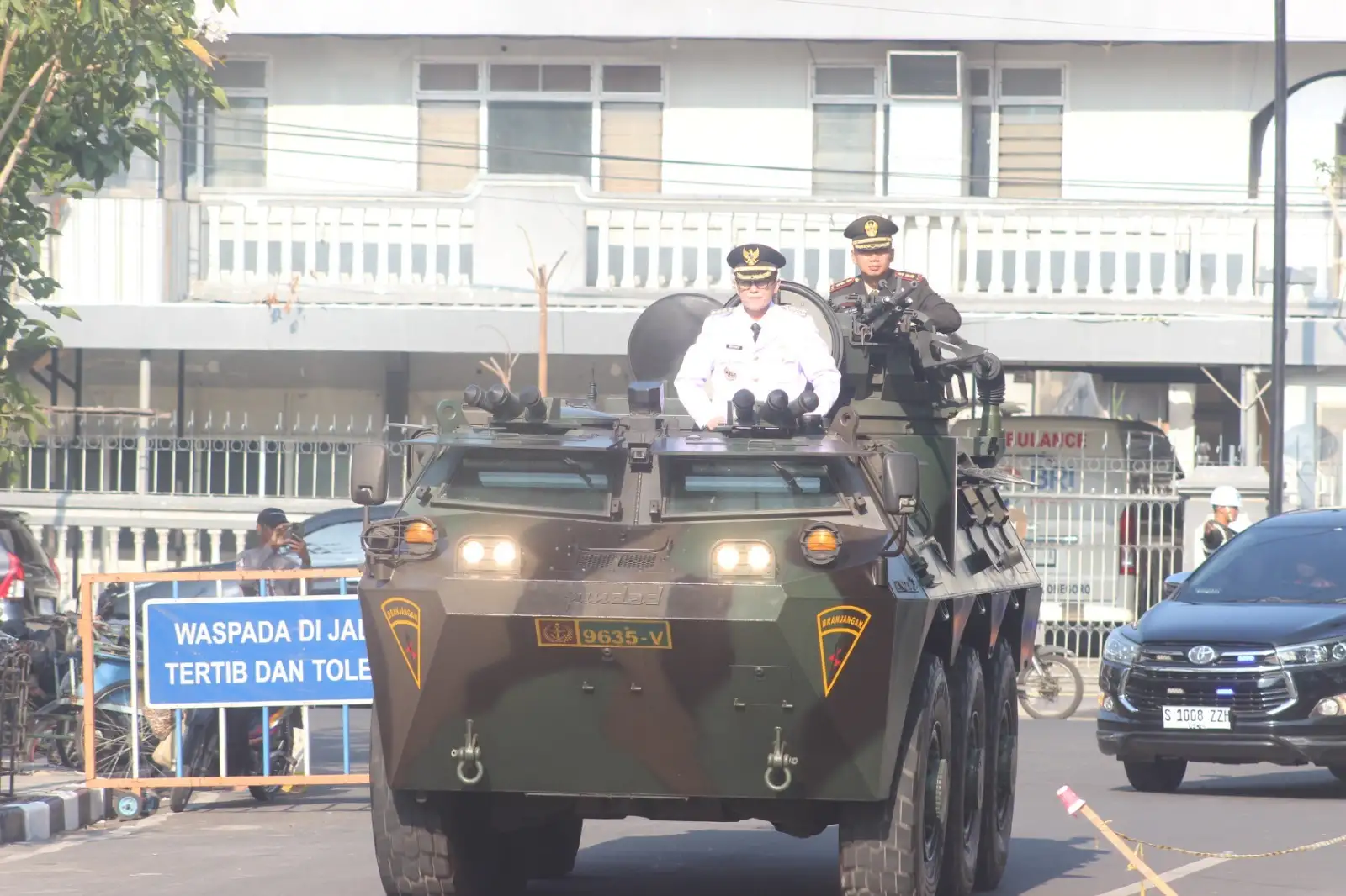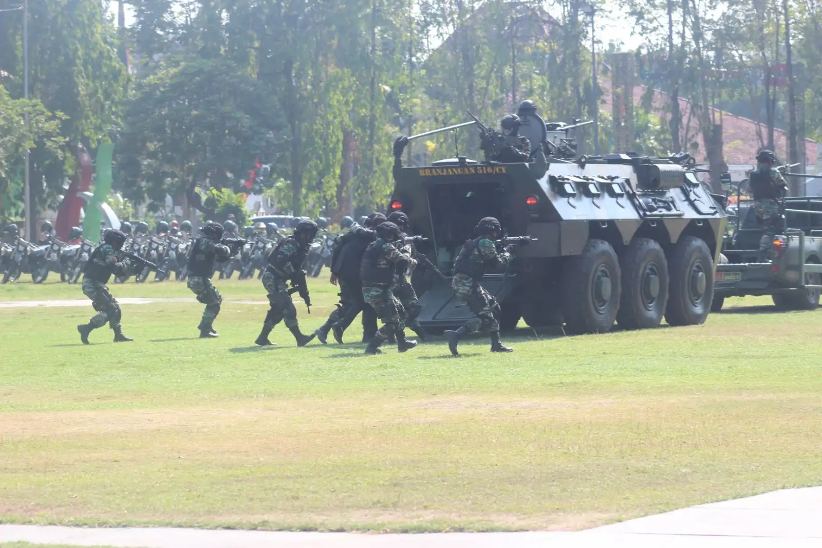 Hadir dalam kegiatan ini, Dandim 0813, Pj Bupati Bojonegoro didampingi sekretaris daerah, forkopimda, dan ketua DPRD. Para pejabat tersebut menaiki mobil Panser Anoa menuju lapangan upacara. Hadir pula pasukan gabungan yang terdiri dari Polri, Brimob, BPBD, Damkar, Linmas, PNS Kodim, mahasiswa, siswa, IPSI, serta tamu undangan.