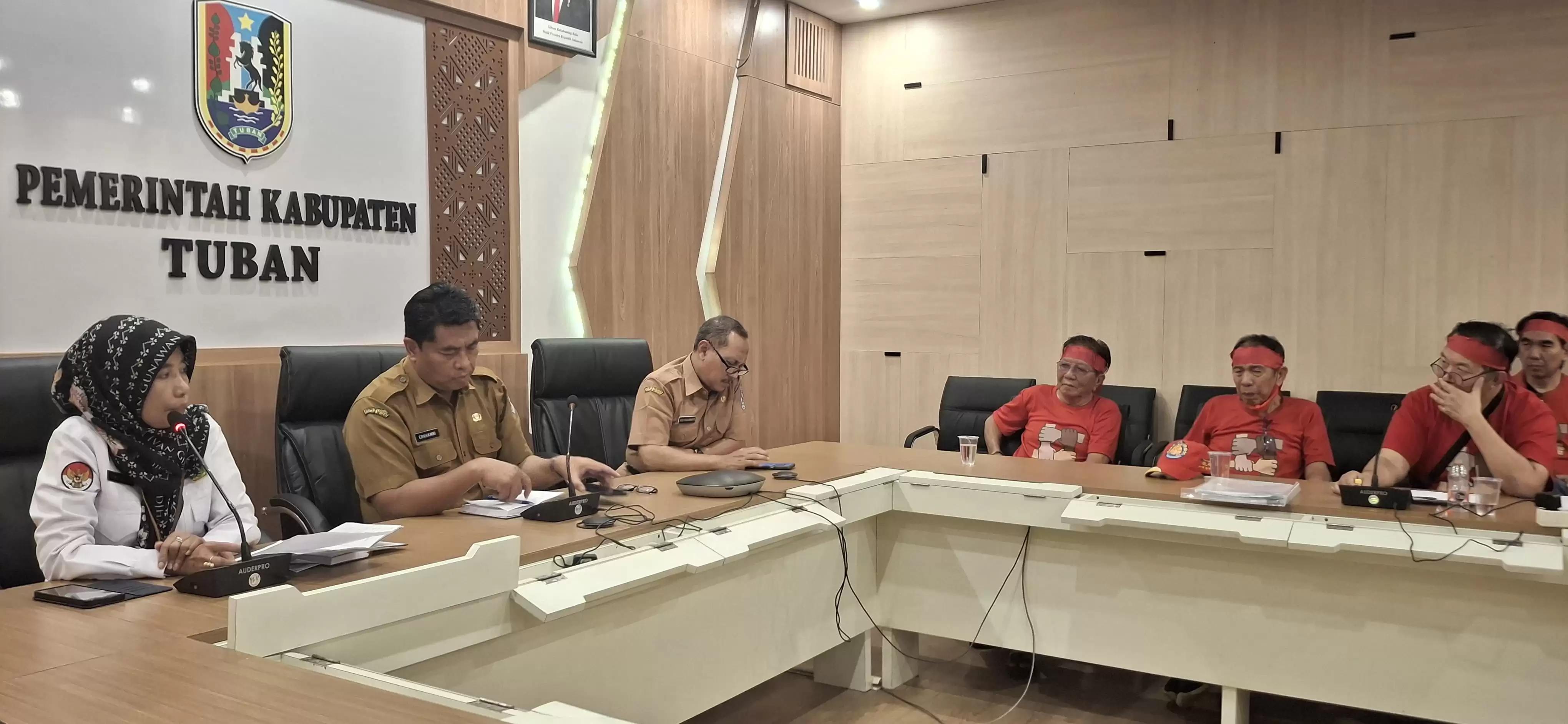 TUBAN || Penarealita.com – Pemerintah Kabupaten Tuban menugaskan Badan Kesatuan Bangsa dan Politik (Bakesbangpol) bersama Kementerian Agama (Kemenag) Kabupaten Tuban untuk menerima aspirasi massa dalam Aksi Demo Damai terkait sengketa pengelolaan Klenteng Kwan Sing Bio Tuban. Audiensi berlangsung di ruang rapat Sekretariat Daerah (Setda) Kabupaten Tuban, Selasa (3/2/2026).