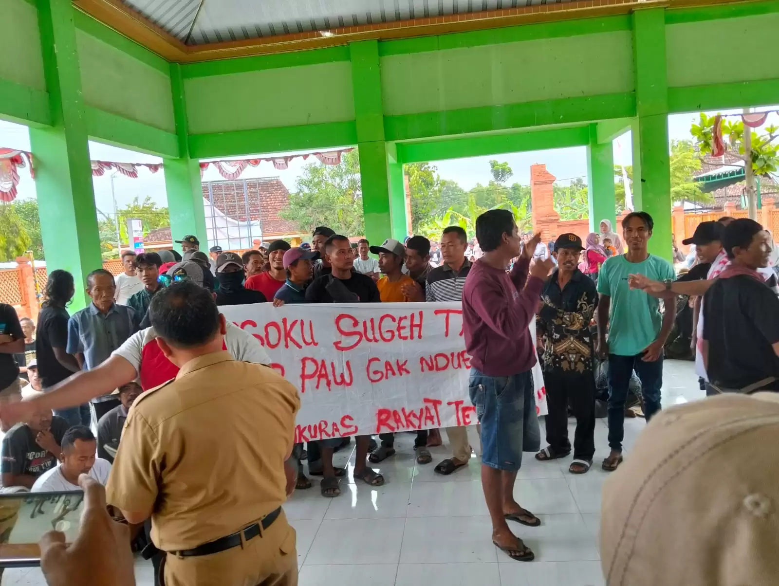 Salah satu warga, Mardi, mengaku masyarakat merasa dipermainkan oleh proses PAW yang dinilai tidak transparan dan tidak sesuai aturan.